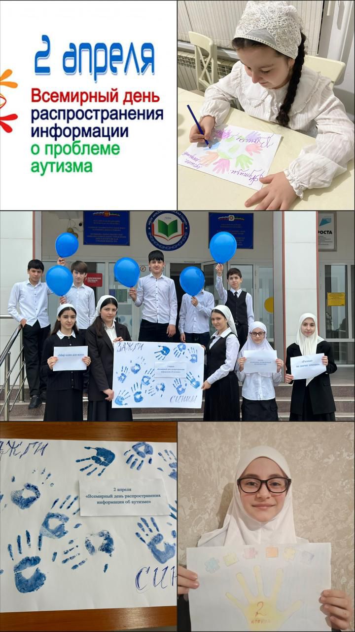 02.04.2026В МБОУ" Илсхан-Юртовская СШ№2 "2 апреля во "Всемирный день распространения информации об аутизме" были проведены следующие мероприятия.Акция «Зажги синим» Цель: Привлечение внимания к проблеме аутизма, повышение информированности общества и необходимость поддержки людей с РАС. Символ: Синий цвет(часто используемый символ,олицетворяющий спокойствие и надежду. Так же старшеклассники нашей школы нарисовали плакат с информацией об этой важной дате,как вести себя с людьми с аутизмом.